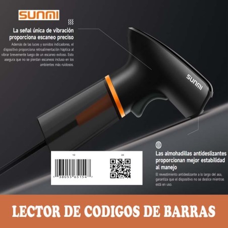 Sunmi 2D Scanner, Escáner SUNMI Escaneo rápido y preciso que maneja eficientemente. Procesamiento de pagos de alto volumen. Profundidad de campo de lectura: Código QR EAN13 (13 milésimas de pulgada) de 55 mm a 300 mm y código QR (15 milésimas de pulgada) de 35 mm a 190 mm, Iluminación: LED blanco, Sensor de imagen: CMOS, Precisión de lectura: ≥3mil, Conector USB 2.0 tipo A macho, Sensibilidad del código de barras: Inclinado ±50°/rotativo 360°/desviado ±50°, Ángulo del campo de visión: Horizontalmente 45°, verticalmente 34°