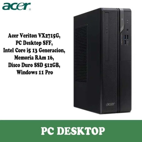 Acer Veriton VX2715G, PC Desktop SFF, Intel Core i5 13 Generacion, Memoria RAm 16, Disco Duro SSD 512GB, Windows 11 Profesional
